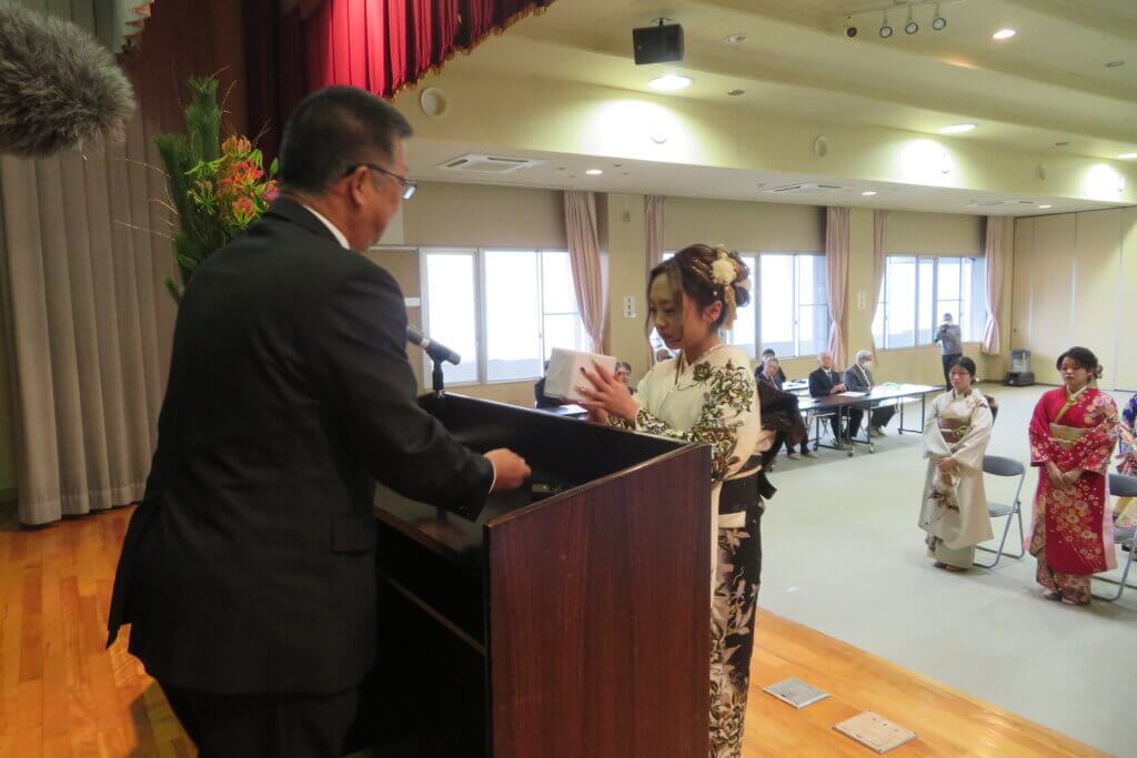 令和8年神山町二十歳を祝う会が1月2日(金)に神山町農村環境改善センターで開催されました。今年の対象者は17名でした。華やかな晴れ着に身を包んだ出席者のみなさんは、今まで支えてくれた方々との絆や神山への想いを深め、決意を新たにしました。茶話会では同級生との久しぶりの再会に話を弾ませたり、写真を撮ったりする姿も見られました。