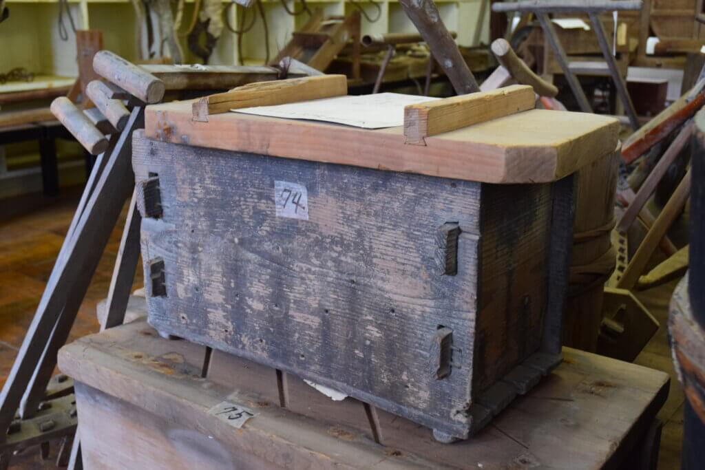旧鬼籠野小学校内にある神山町郷土資料館には、町内で昔から使われてきた道具や衣装がたくさん展示されています。その中で、暮らしにまつわる道具をいくつかご紹介します。これは一体何をするための道具でしょうか?当時の人々の無駄のない暮らしや、自然を生かした知恵や技術に思いを馳せながら、クイズに答えてみよう。全問正解できたら、あなたは昔の道具博士です!