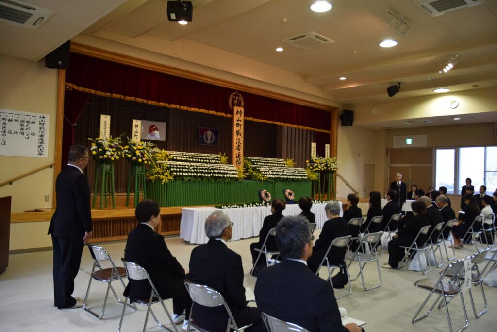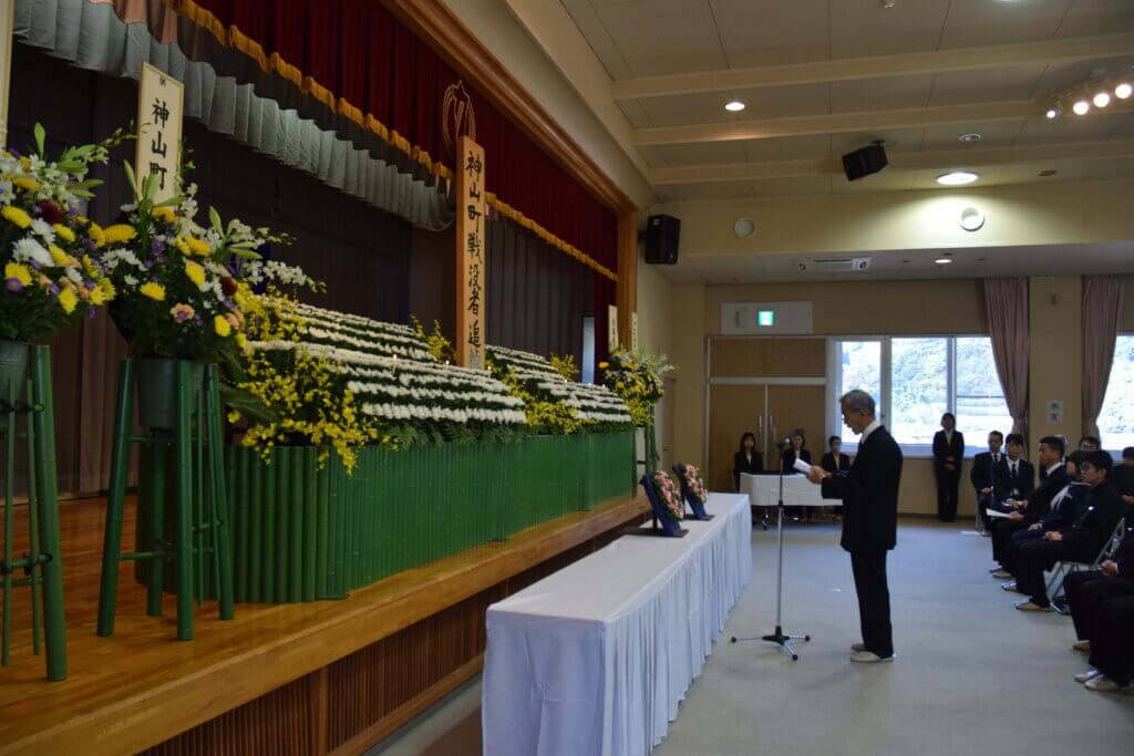 11月14日(金)に、神山町戦没者追悼式が神山町農村環境改善センターにて行われ、ご遺族のみなさまをはじめ、来賓、児童・生徒を含む約80名の方々にご参列いただきました。