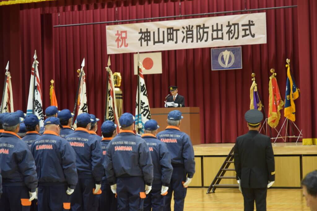 令和8年1月11日(日)、神山中学校屋内運動場において、神山町消防出初式が消防団本部及び6分団、女性消防隊あわせて267人が参加し行われました。
